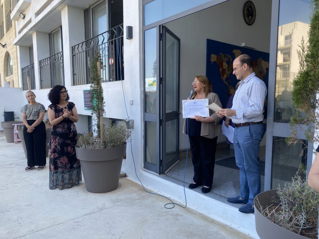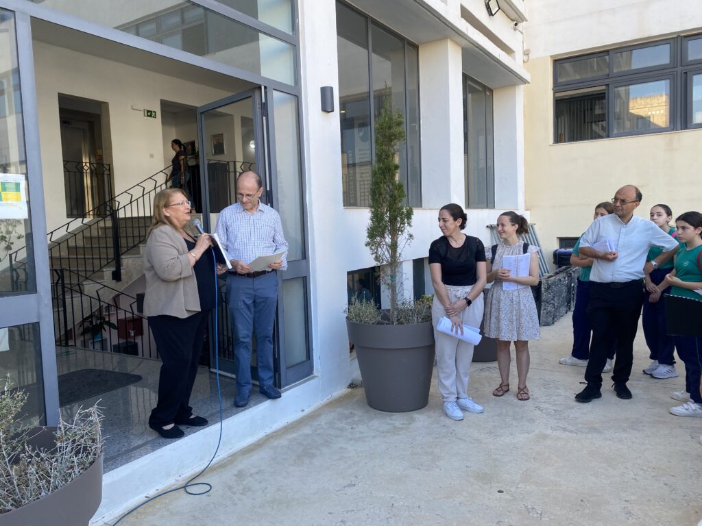 Dalgħodu stedinna lill-Eċċellenza Tagħha l-President Emeritu Mary Louise Coleiro Preca, f’isem The Malta Trust Foundation, sabiex nippreżentaw ċekk bil-qligħ mill-Bake Sale li sar f’Marzu, organizzat mill-Kunsill tal-Istudenti fl-iskola tagħna.